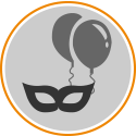 globos de colores, antifaces e instrumentos inflables.